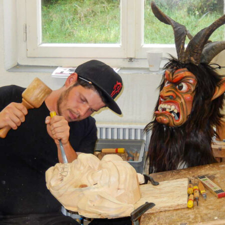 Widmen Sie sich dem traditionellen Handwerk des Maskenschnitzens