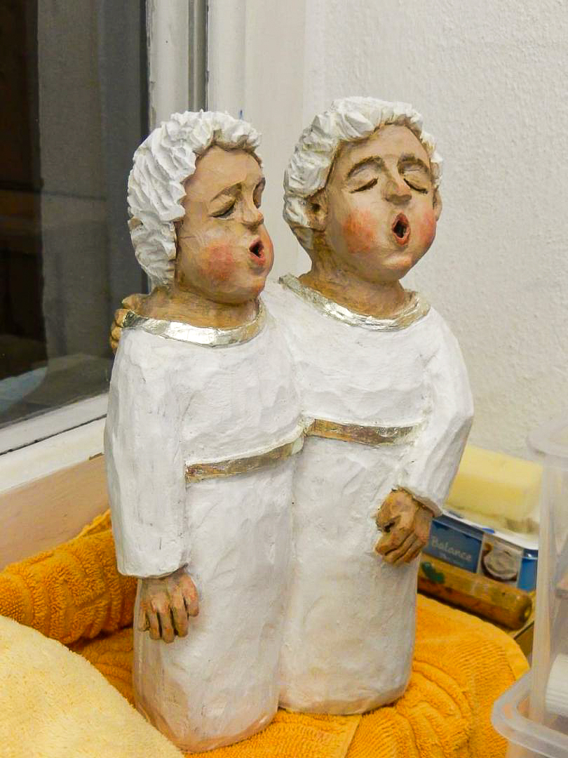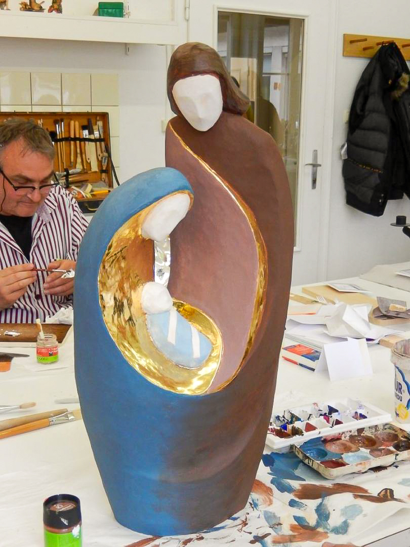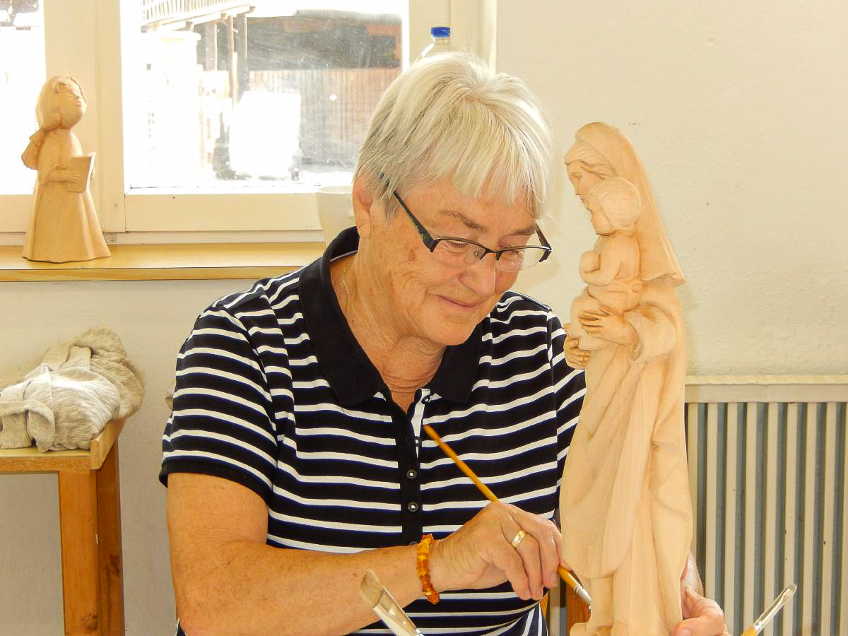 Gerne können Sie naturbelassene Schnitzereien zum Kurs mitbringen oder bei uns günstig erwerben. Geeignet sind Modelle, die Haut (Gesicht), Kleidung, Umhänge, Bordüren etc. aufweisen. Wenn Sie eine Skulptur restaurieren möchten, senden Sie uns bitte unbedingt vorab ein Foto des Stückes zu. Nur so können wir die Machbarkeit der Restauration im Kurs abklären.