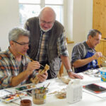 Materialien wie Farben, Beizen, Wachs, Kreide und Poliment werden von uns zur Verfügung gestellt und als Materialpauschale verrechnet. Gold, Silber sowie alle weiteren Materialien können Sie bei uns erwerben oder aber von zu Hause mitbringen. Eine Vergütung der Materialpauschale erfolgt in diesem Fall jedoch nicht.