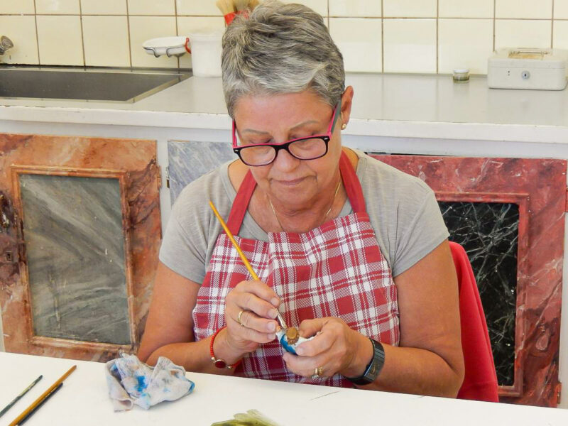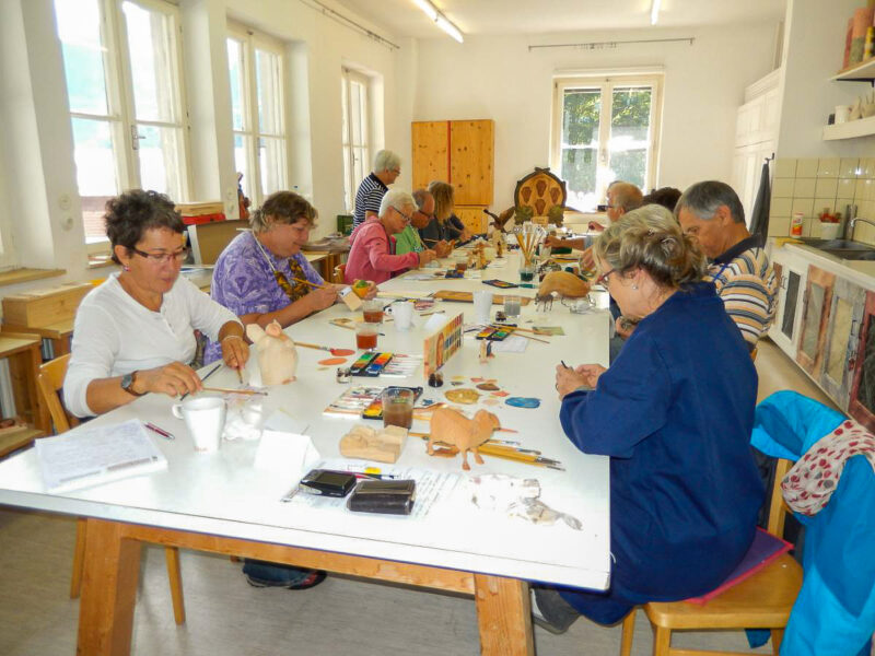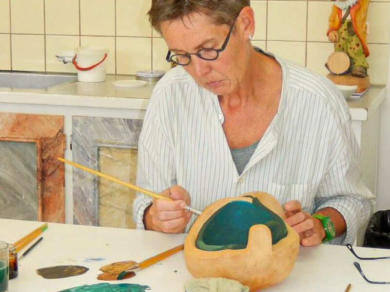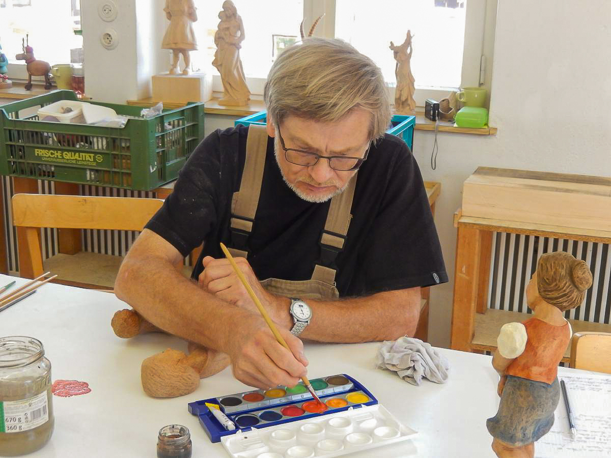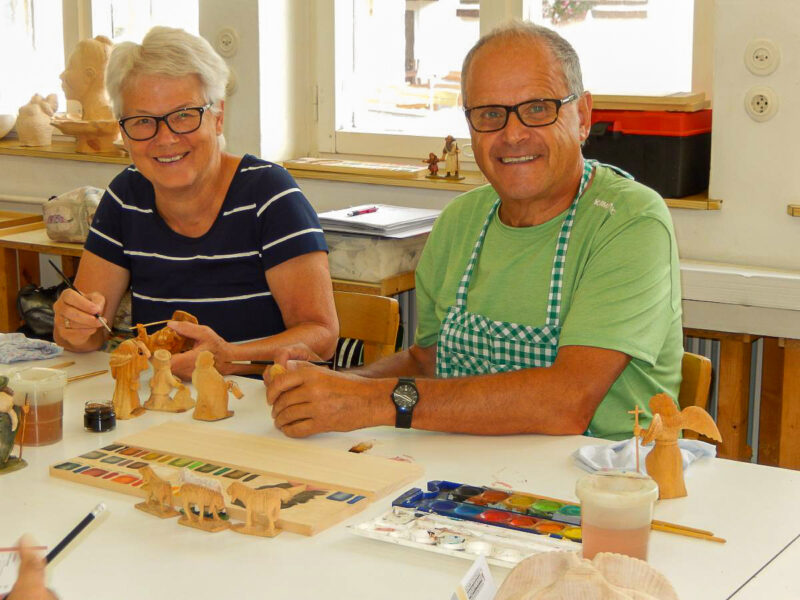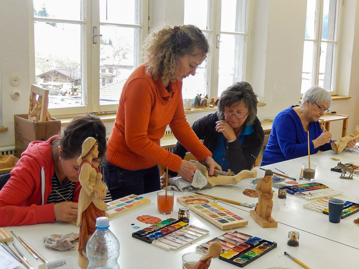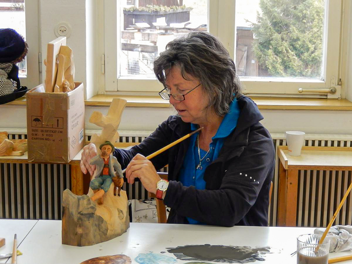 Es werden Ihnen die grundlegenden Arbeitsschritte zum Beizen und Bemalen von traditionellen Schnitzereien vermittelt. Sie erlernen das einfärbige Beizen, das Mehrtonbeizen