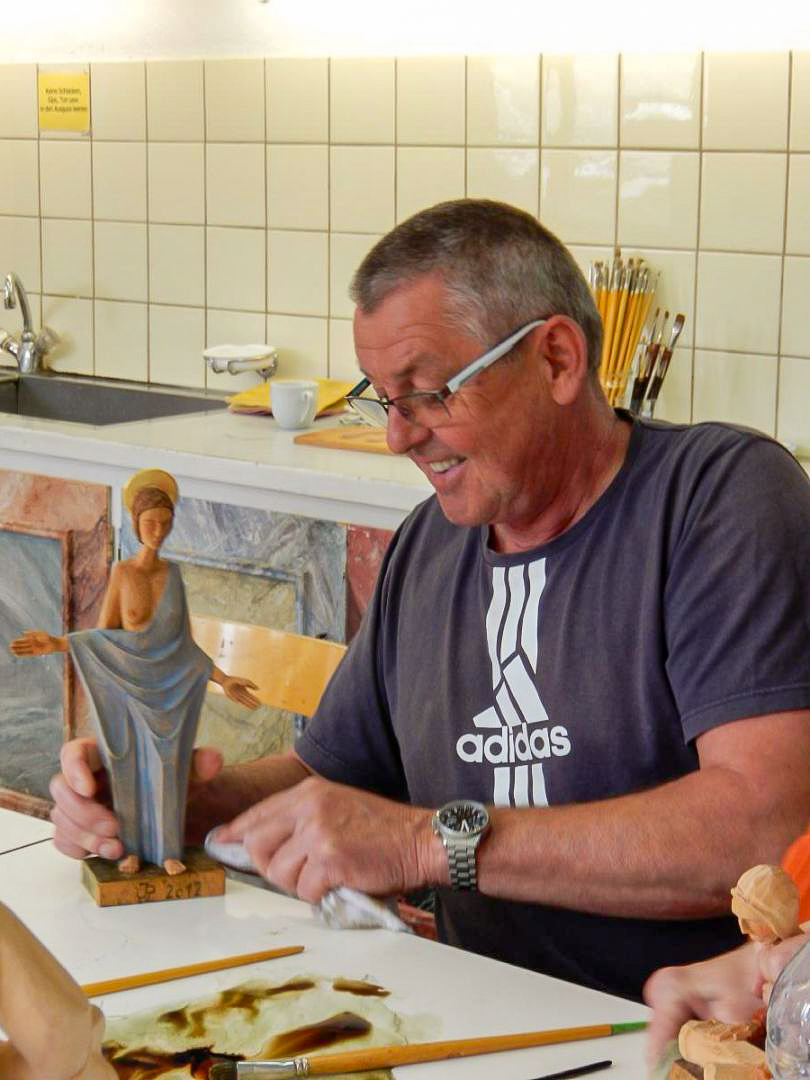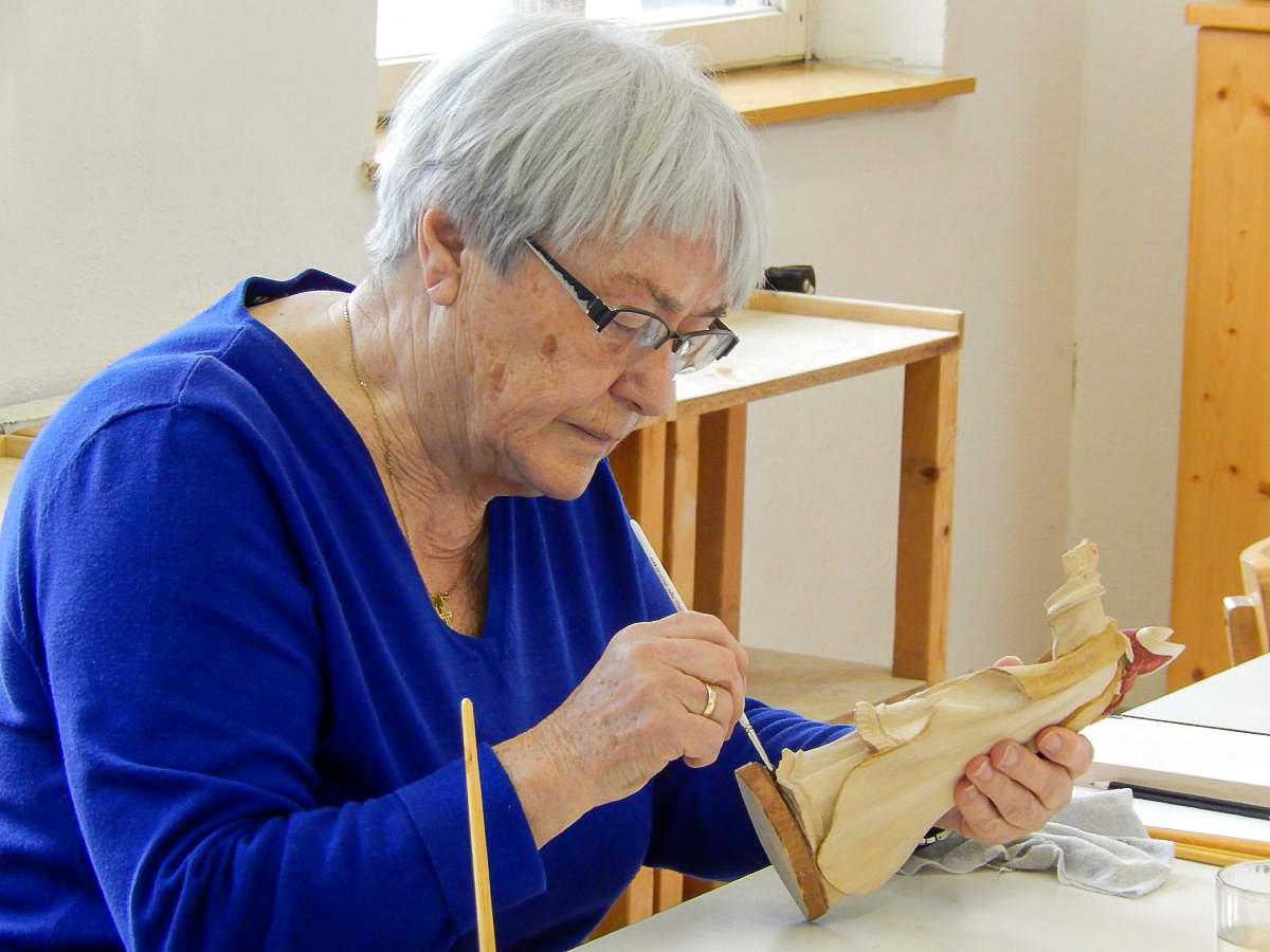 Gerne können Sie naturbelassene Schnitzereien zum Kurs mitbringen oder bei uns günstig erwerben. Geeignet sind Modelle, die Haut (Gesicht), Kleidung, Umhänge, Bordüren etc. aufweisen. Wenn Sie eine Skulptur restaurieren möchten, senden Sie uns bitte unbedingt vorab ein Foto des Stückes zu. Nur so können wir die Machbarkeit der Restauration im Kurs abklären.