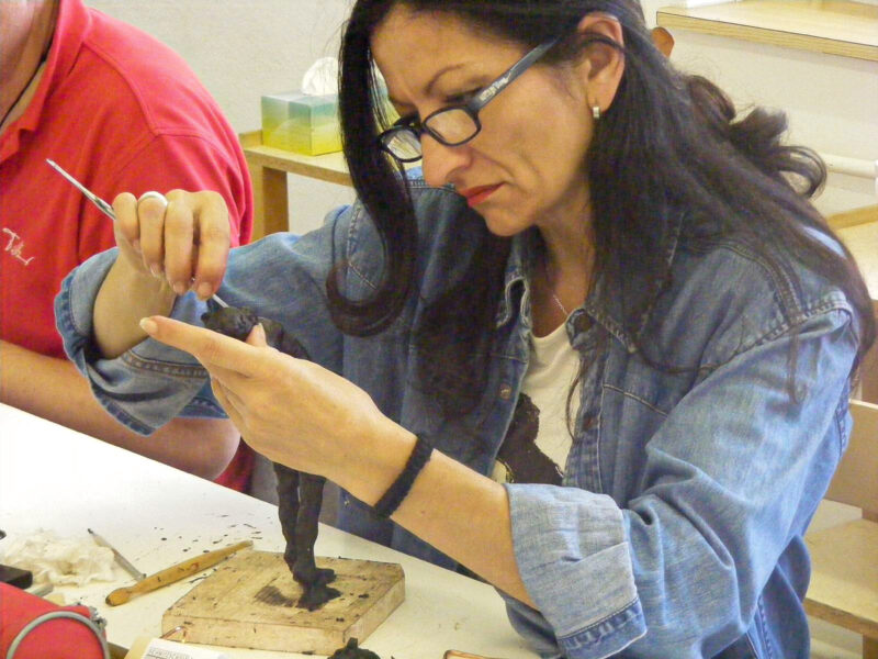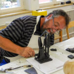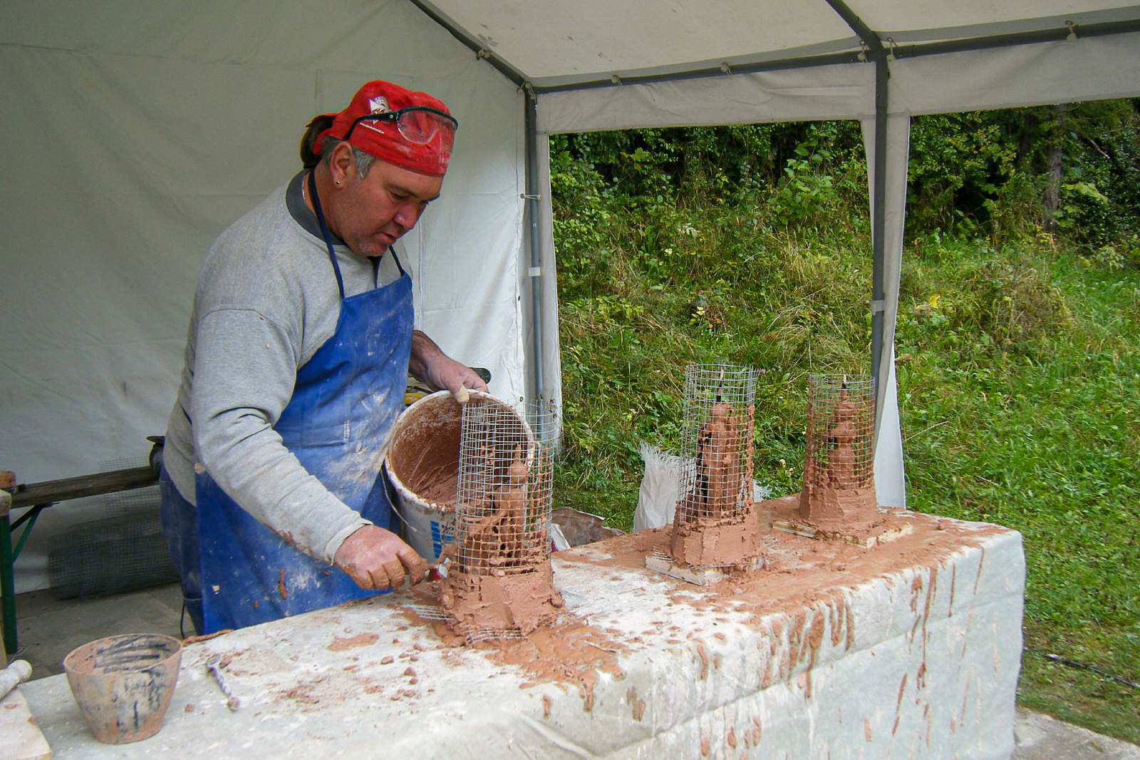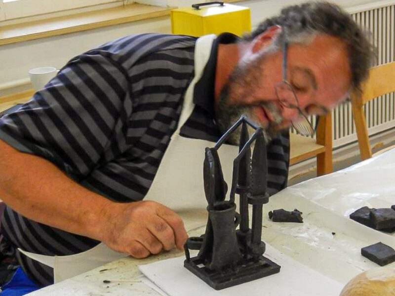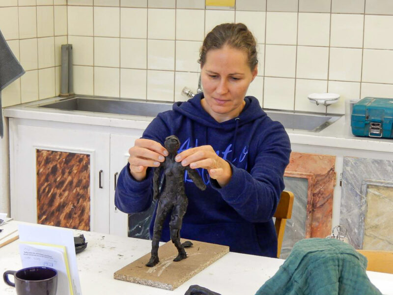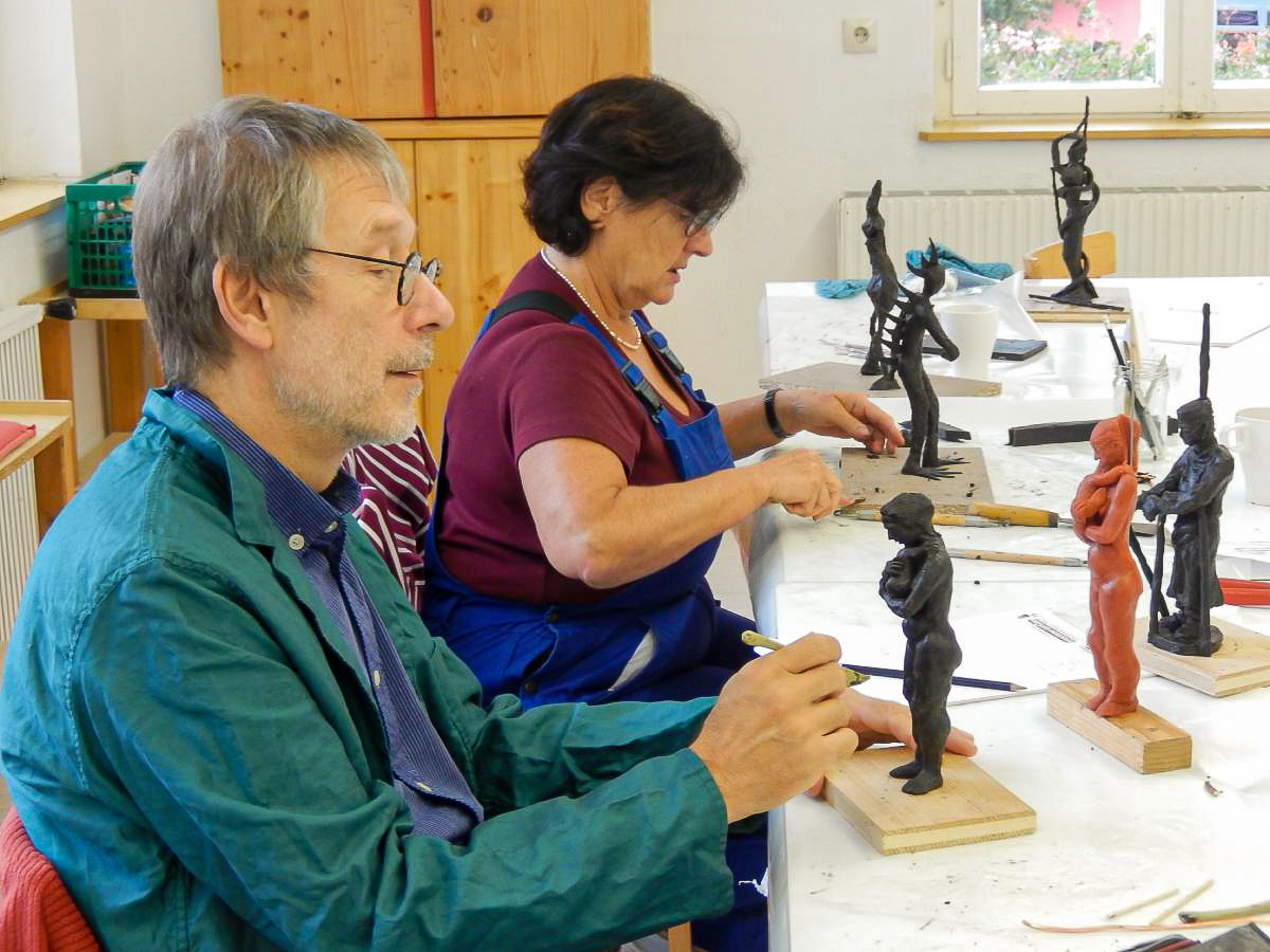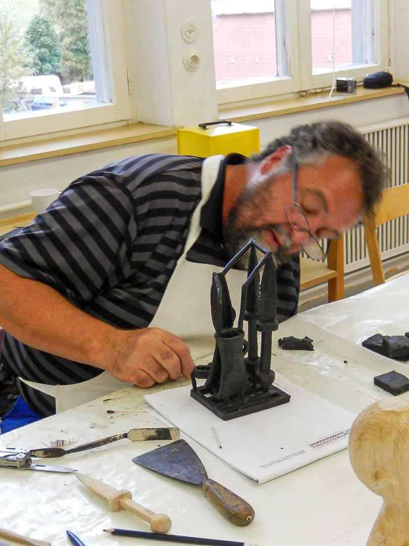 Erschaffen Sie filigrane Kleinplastiken aus Bronze-Vollguss (max. Höhe: 30cm, max. Stärke: 4cm)! Zunächst wird ein Wachsmodell erstellt und dieses anschließend eingeformt und ausgebrannt. Nun wird die Form mit flüssiger Bronze ausgegossen und der Guss abschließend nachbearbeitet. Von Montagfrüh bis Dienstagmittag wird zusammen mit einem unserer Kursleiter modelliert. Dann übernimmt der Kunstgießer das eigentliche Abguss-Programm. Nach dem Wachsausschmelzen müssen Formen und Ofen ca. 26 Stunden abkühlen. Deshalb ist der Donnerstag „Bronze- Theorietag“, an dem der Kunstgießer auch alle wichtigen Schritte des Bronze-Hohlgussverfahrens erklärt und ausführlich vorführt.