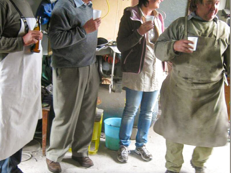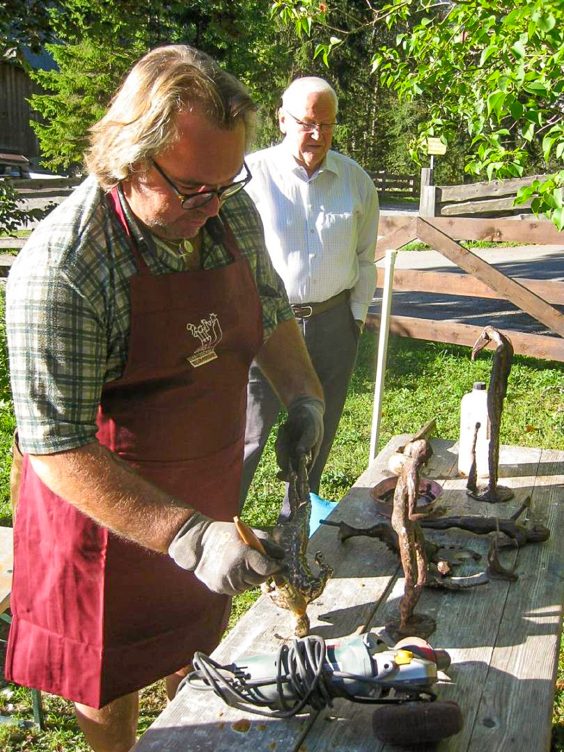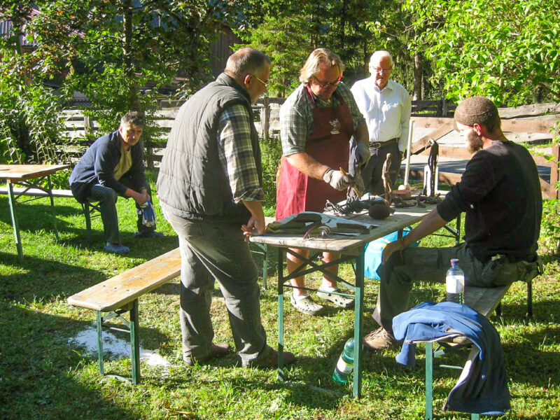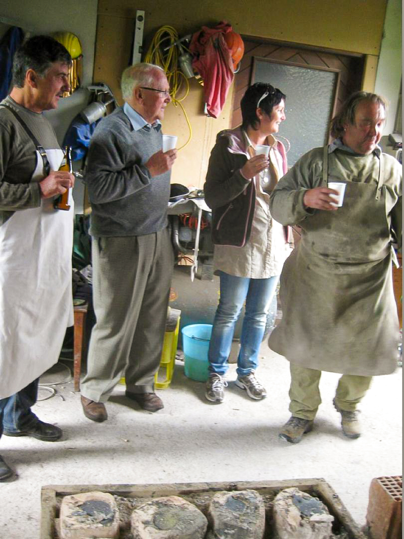 Bringen Sie bitte Arbeitskleidung (Schürze, Staubmaske, Schutzbrille) und nach Möglichkeit folgende Werkzeuge mit: Winkel- und Geradeschleifer, Messingbürste, Flachmeißel und Hammer.