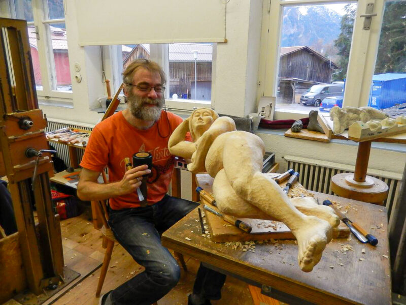 Bitte beachten Sie, dass die Feinausarbeitung eines geschnitzten Aktes im Rahmen eines einwöchigen Kurses eine große Herausforderung darstellt. Durch den Kurs werden