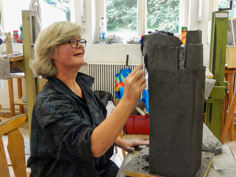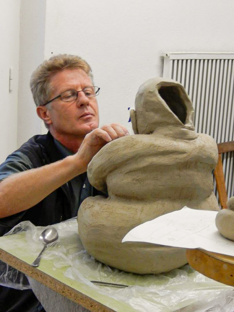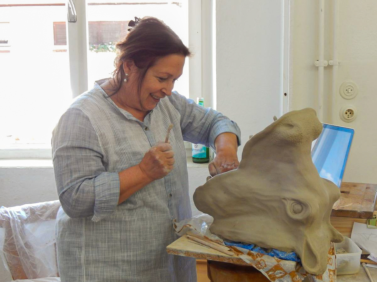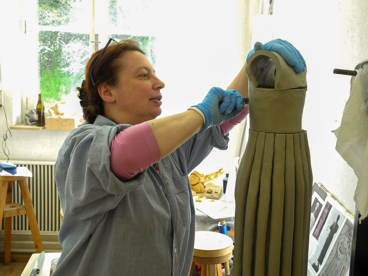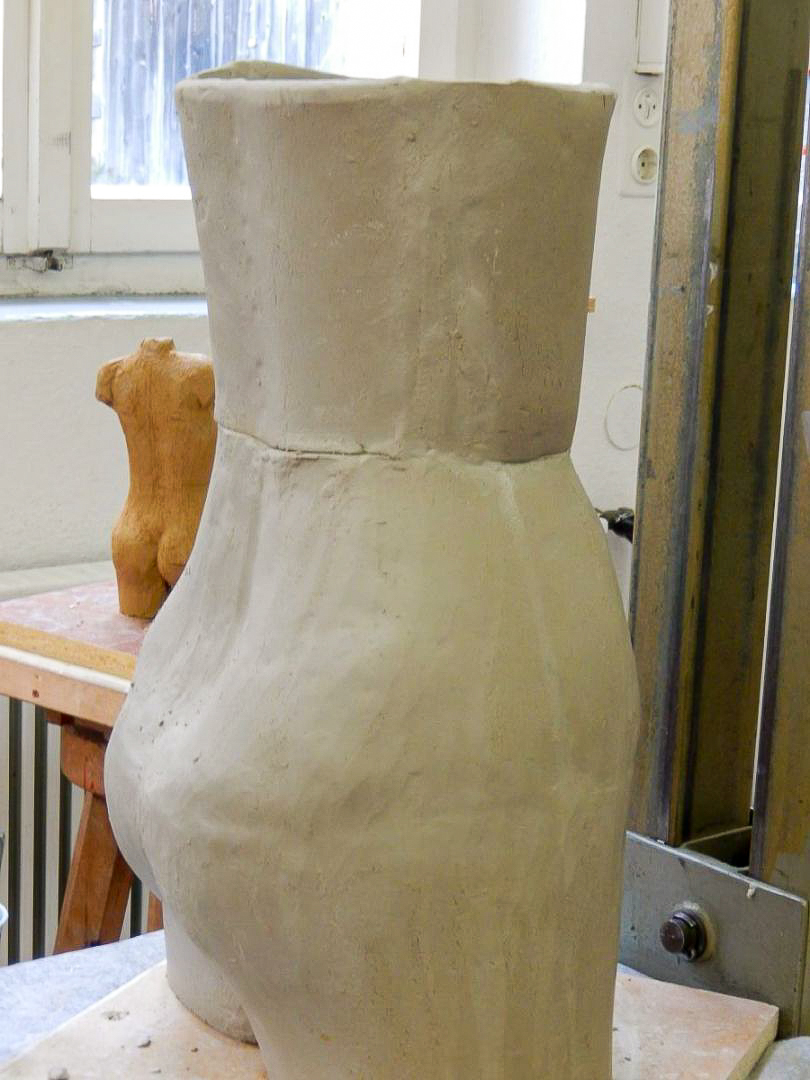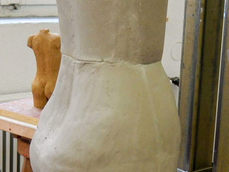 Mit der richtigen Technik sind goßformatige Plastiken im Hohlaufbau möglich, die anschließend gebrannt werden können.