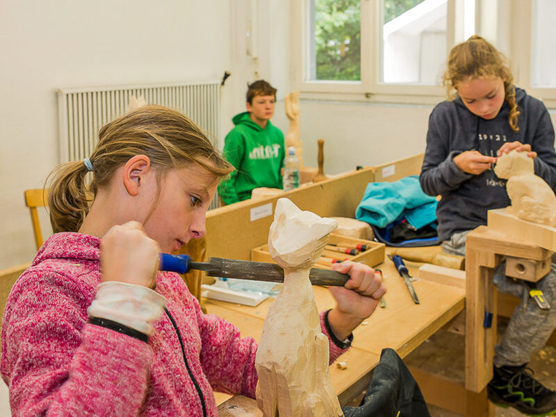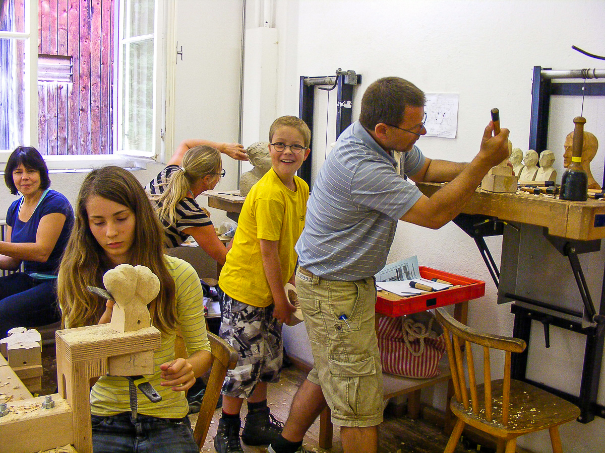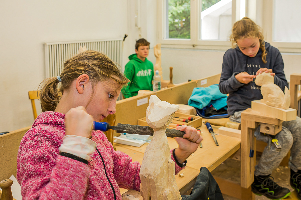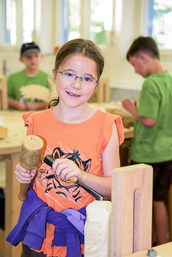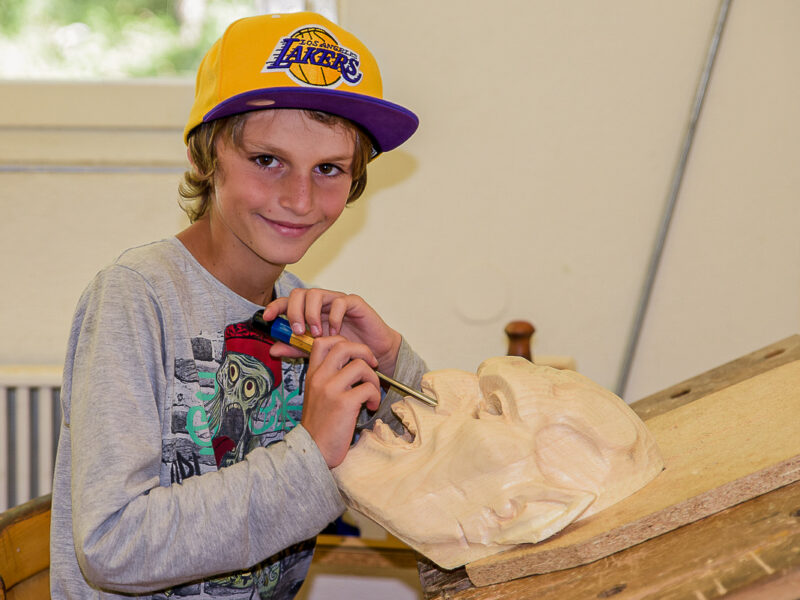 Im Alltag bleibt für Eltern, Großeltern, Alleinerziehende, Wochenendväter und Paten oft viel zu wenig Zeit für die Kinder. Wer daher kreative und erlebnisreiche Ferien mit vielen gemeinsamen Aktivitäten erleben möchte, ist bei unserer Familienwoche genau richtig! Egal ob jung oder alt, Anfänger oder erfahrener Handwerker: In der Familienwoche bieten wir für jeden das Richtige. Der Nachwuchs wird im Kinderschnitzkurs altersgerecht mit der Holzbearbeitung vertraut gemacht und den Erwachsenen stehen parallel dazu alle in diesen Wochen stattfindenden Kurse aus unserem Programm zur Auswahl. Die meisten Kurse sind auch halbtägig buchbar, sodass der Nachmittag für gemeinsame Aktivitäten genutzt werden kann. Sie möchten als Erwachsener einen ganztägigen Kurs besuchen oder planen eine Unternehmung ohne Ihr Kind? Dank der Nachmittags- und Abendbetreuung für alle Teilnehmer des Kinderschnitzkurses ist auch das kein Problem!
