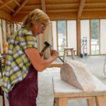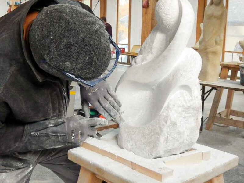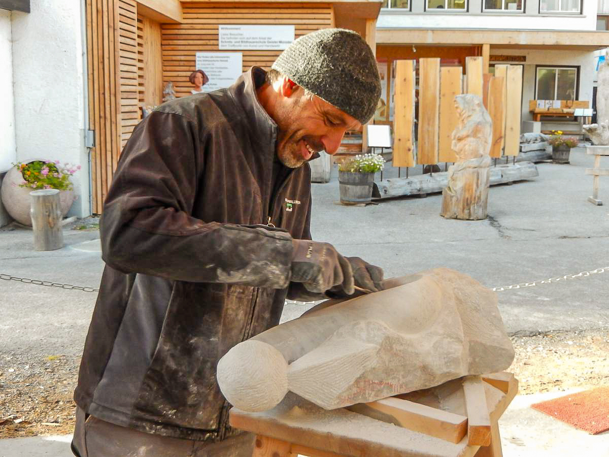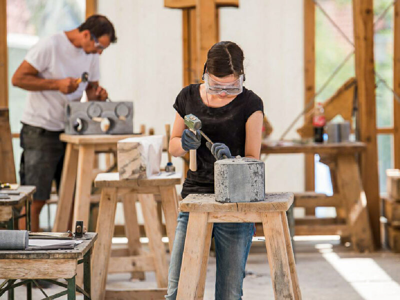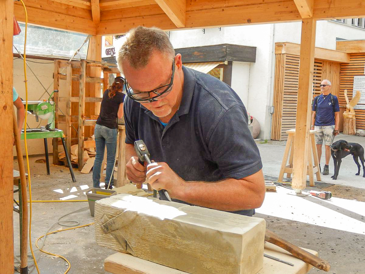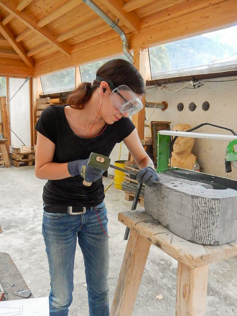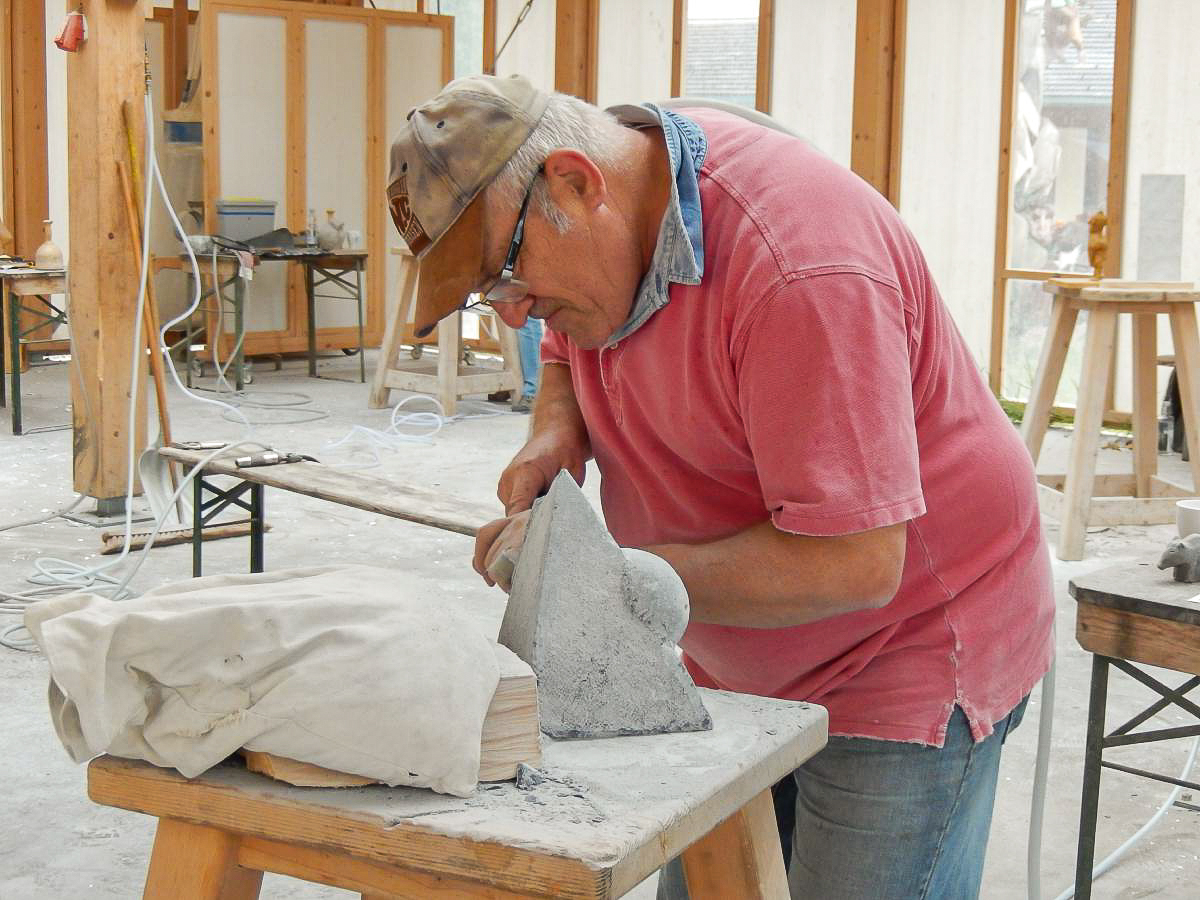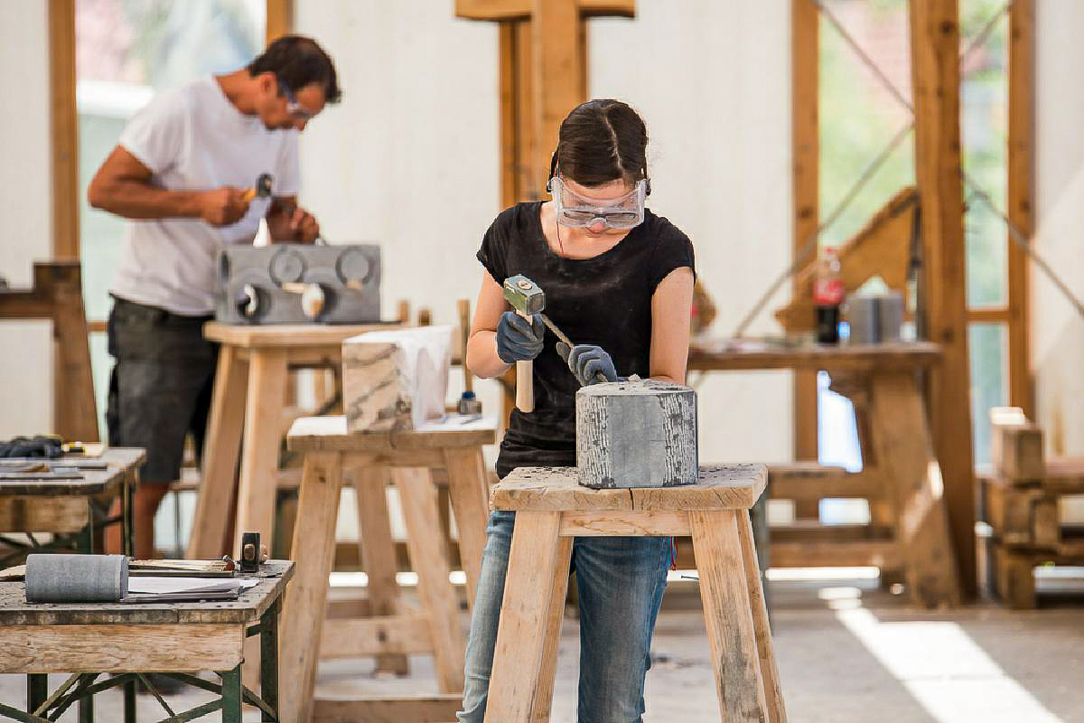 Alle Steinbildhauerkurse finden in unserem Bildhauer-Pavillon statt. Bei den Steinbildhauerkursen wird vorwiegend mit Handwerkzeug gearbeitet. Ergänzend können Sie aber auch Druckluftwerkzeuge einsetzen. Eine Grundausrüstung an Werkzeugen wird jedem Kursteilnehmer zur Verfügung gestellt. Bringen Sie bitte Augen- und Ohrenschutz, Arbeitskleidung