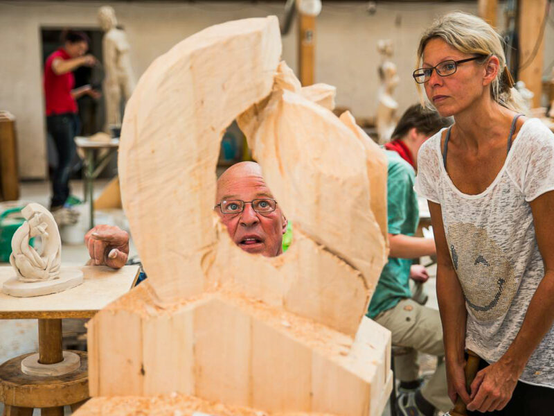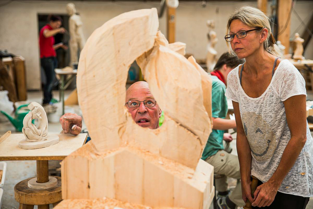 Der Kurs findet im Bildhauerpavillon statt. Für das Erarbeiten der groben Form kann die Kettensäge verwendet werden. Beachten Sie jedoch bitte, dass es sich hier um keinen Kettensägenkurs handelt! Diese kommt nur für die Vorarbeiten zum Einsatz. Sollten Sie Hölzer für Ihre Großskulptur oder entsprechende Werkzeuge zu Hause haben, können Sie diese gerne mitbringen. Wir empfehlen je nach Jahreszeit warme Arbeitskleidung!