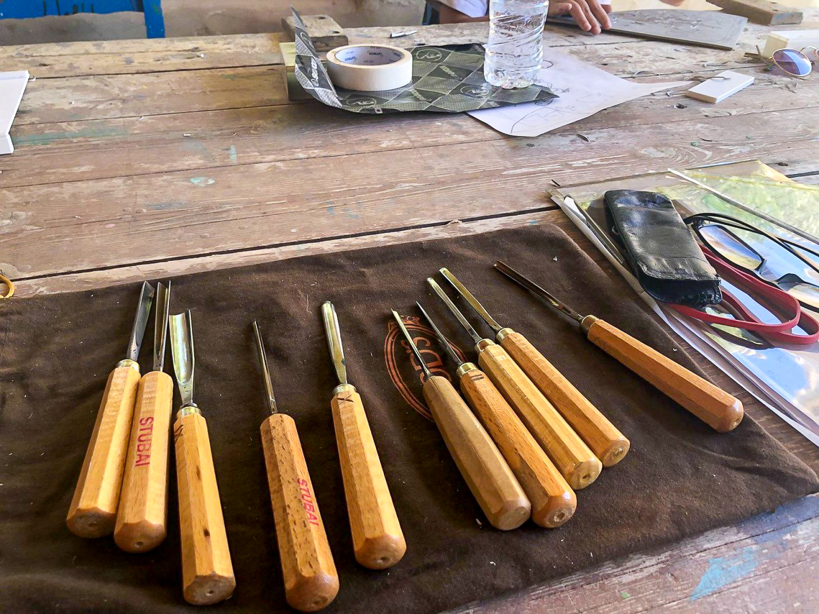 Jeder Kursteilnehmer wird am Ende des Kurses einen oder mehrere Holzschnitte gedruckt haben und eine kleine Auflage besitzen. Das Material wird nach Verbrauch berechnet: Die Kosten hierfür liegen erfahrungsgemäß zwischen € 30,- und € 50,-