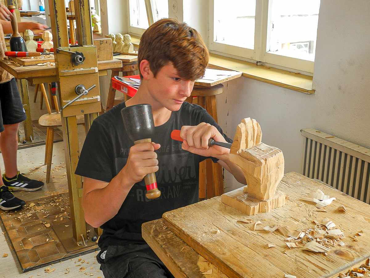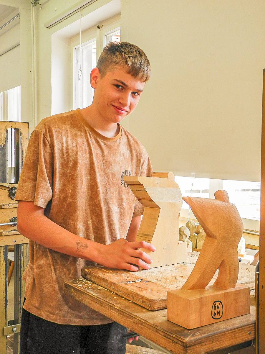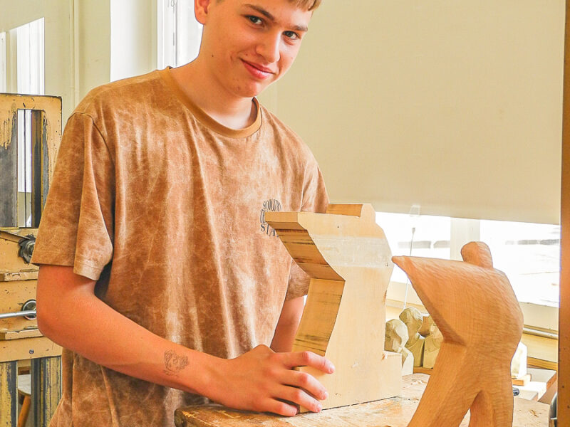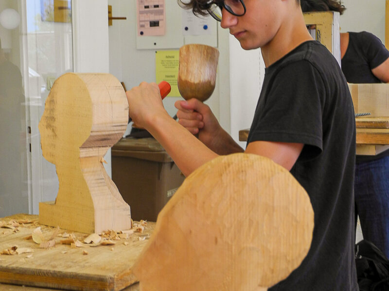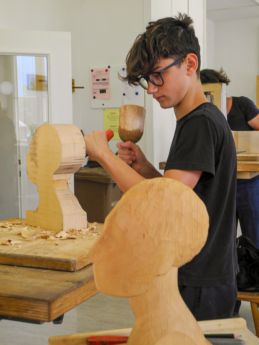 Wir bieten dir das ideale Umfeld, um in alle Bereiche der Bildhauerei einzutauchen. Probiere dich mit den Materialien Holz, Stein und Ton aus und erhalte damit wertvolle Einblicke in dieses facettenreiche Metier. Auch das fachtheoretische Rüstzeug kommt nicht zu kurz: Unerlässliches Basiswissen zu Körperanatomie, Proportionslehre und zur Entwurfszeichnung wird altersgerecht vermittelt.
