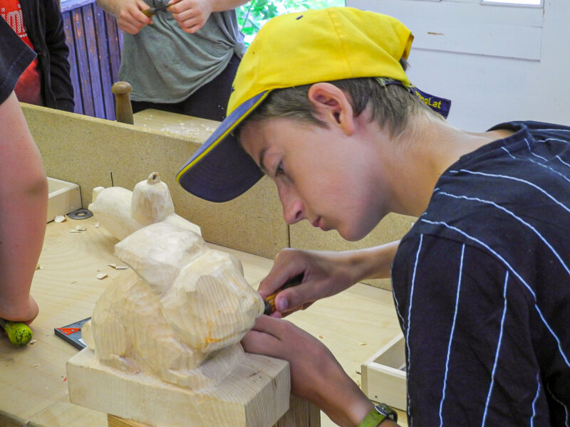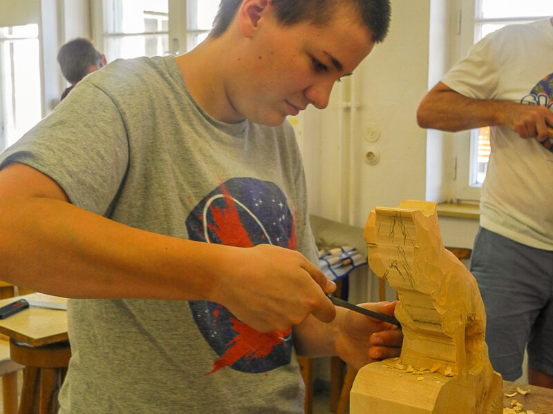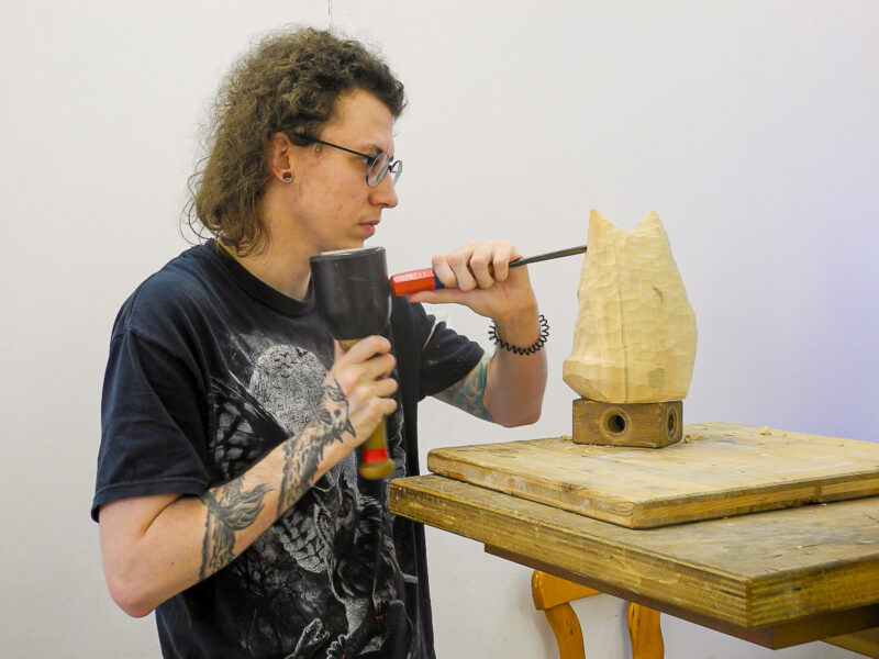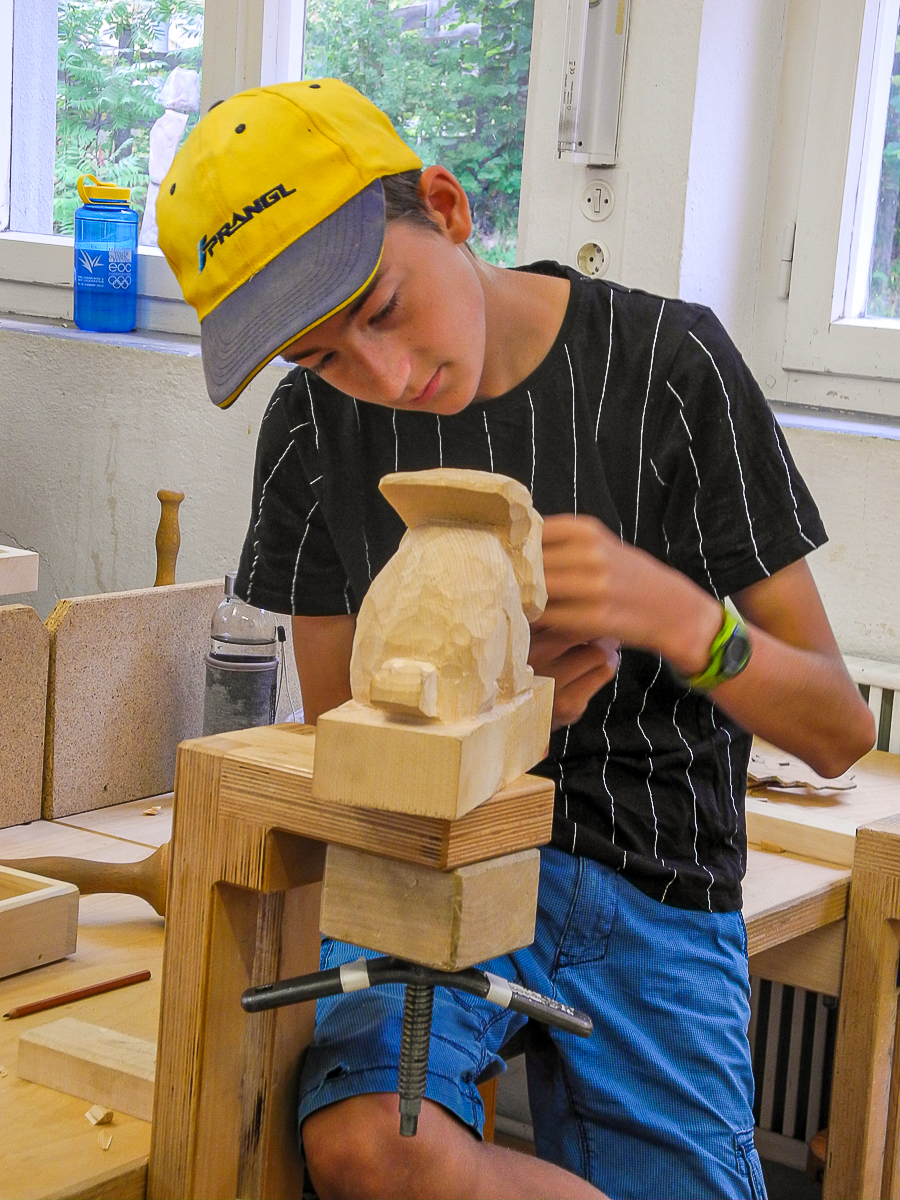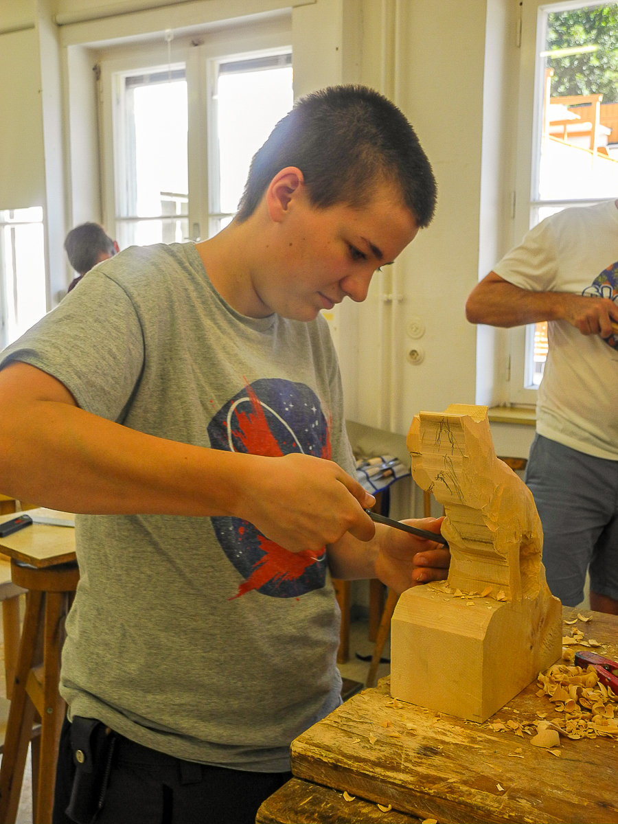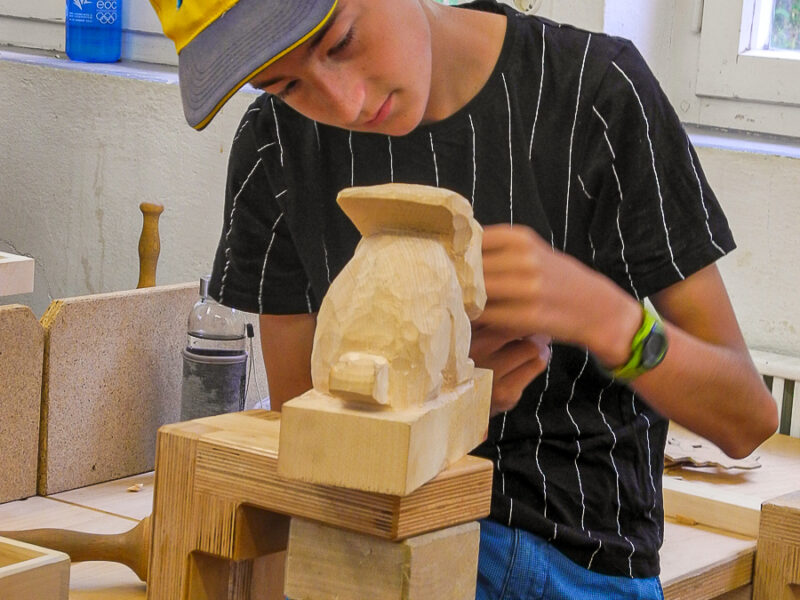 Wir bieten dir das ideale Umfeld, um in alle Bereiche der Bildhauerei einzutauchen. Probiere dich mit den Materialien Holz, Stein und Ton aus und erhalte damit wertvolle Einblicke in dieses facettenreiche Metier. Auch das fachtheoretische Rüstzeug kommt nicht zu kurz: Unerlässliches Basiswissen zu Körperanatomie, Proportionslehre und zur Entwurfszeichnung wird altersgerecht vermittelt.