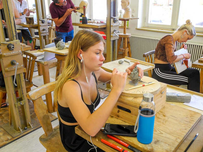 So kannst du feststellen, ob es für dich zur bereichernden Freizeitbeschäftigung wird oder ob sich daraus vielleicht eine berufliche Zukunftsperspektive ergibt. Ganz bewusst arbeitest du in gemischten Gruppen mit Profis zusammen und erfährst dadurch, was Bildhauerei in der Praxis bedeutet und welche Schritte dafür notwendig sind.
