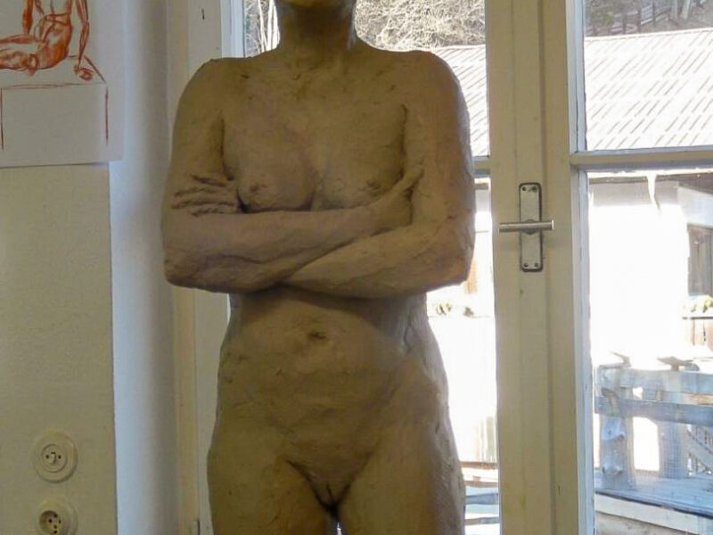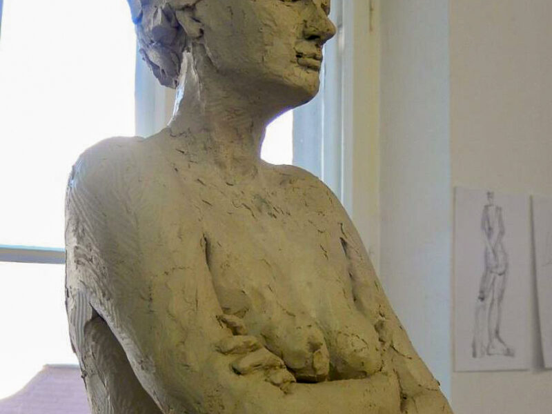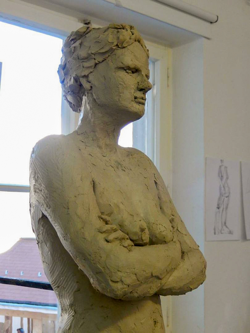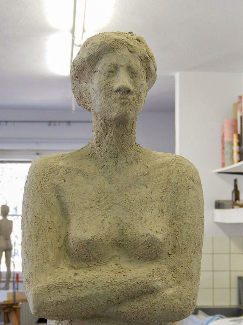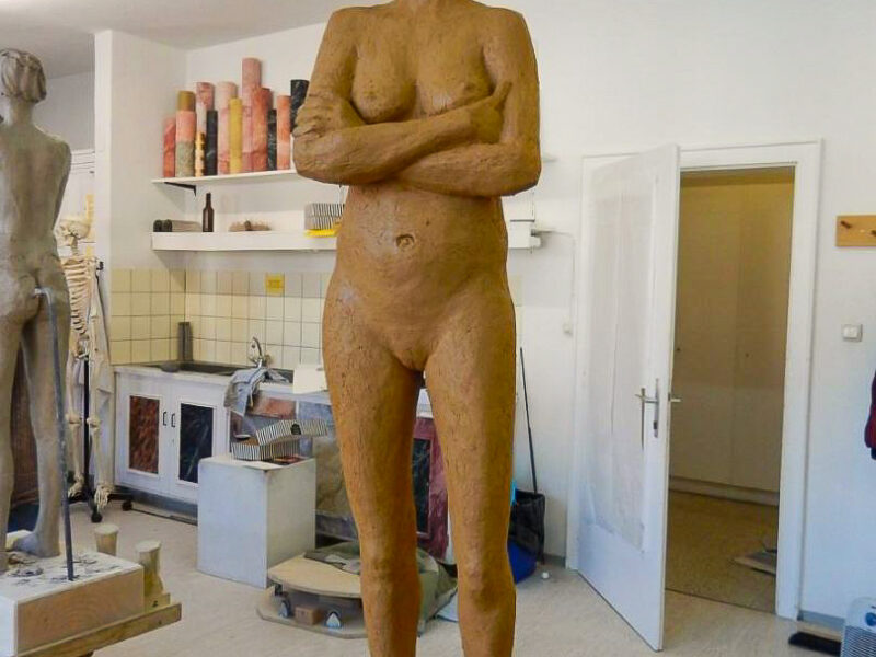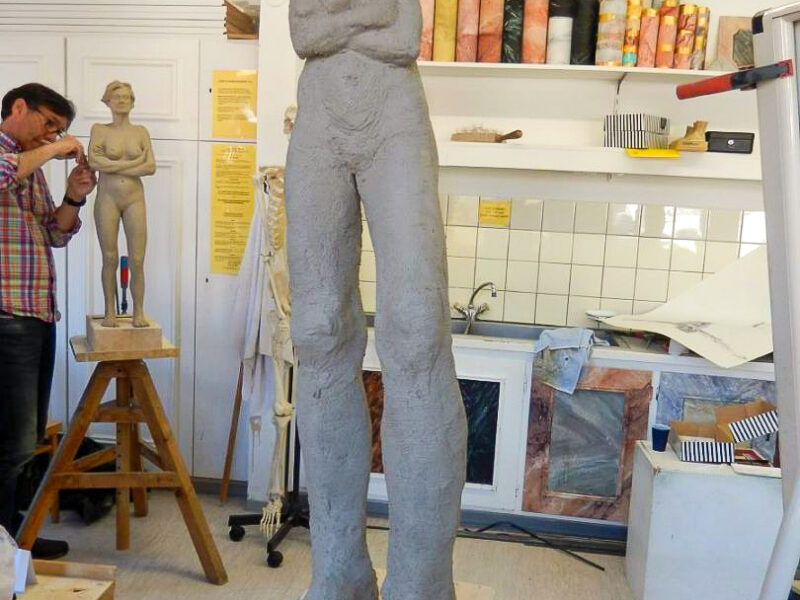Zunächst wird Ihnen wichtiges Grundwissen der Anatomie und der Proportionslehre (1/8-Teilung) vermittelt. Anschließend fertigen Sie eine didaktische Zeichnung und ein Drahtgerüst an. Nach einem lebenden Modell wird dann ein sitzender weiblicher Akt von halber Körpergröße aus Ton oder Plastilin aufgebaut. Anschließend arbeiten Sie mittels verschiedener Gestaltungsmöglichkeiten charakteristische Details heraus.