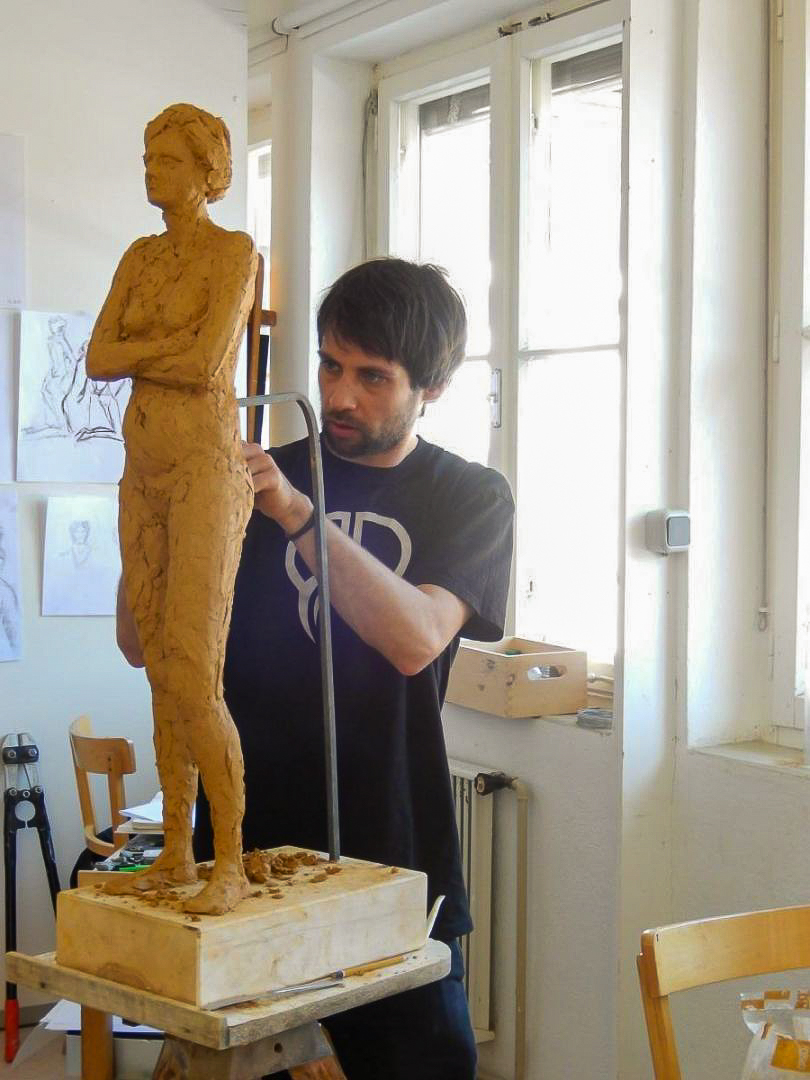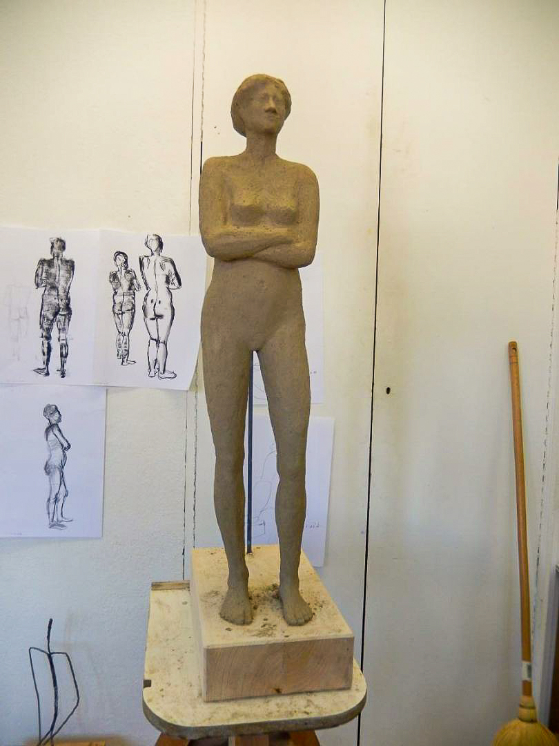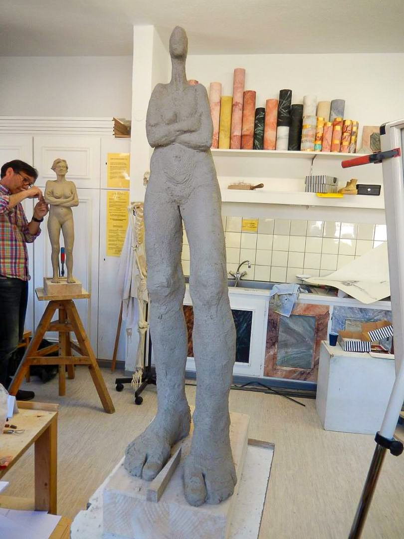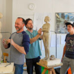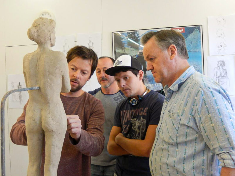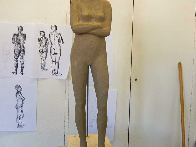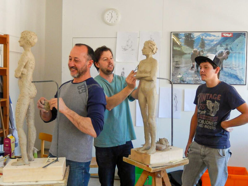 Zunächst wird Ihnen wichtiges Grundwissen der Anatomie und der Proportionslehre (1/8-Teilung) vermittelt. Anschließend fertigen Sie eine didaktische Zeichnung und ein Drahtgerüst an. Nach einem lebenden Modell wird dann ein sitzender weiblicher Akt von halber Körpergröße aus Ton oder Plastilin aufgebaut. Anschließend arbeiten Sie mittels verschiedener Gestaltungsmöglichkeiten charakteristische Details heraus.