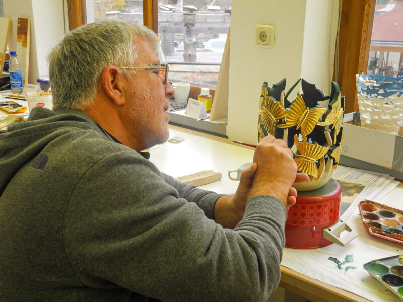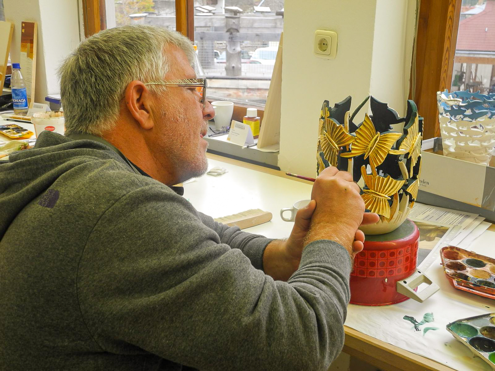 Von Montag bis Mittwoch Mittag wird gedrechselt und anschließend bis Samstag Mittag geschnitzt.