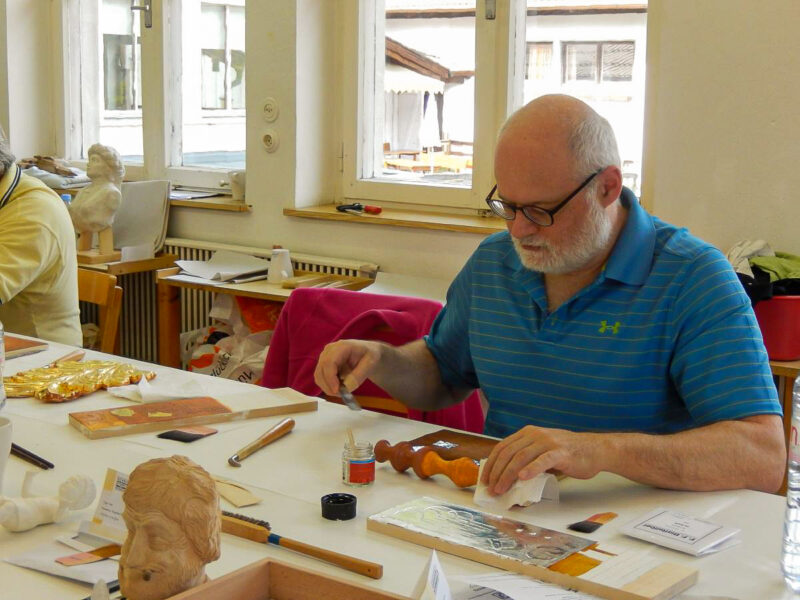 Gerne können Sie naturbelassene Schnitzereien zum Kurs mitbringen oder bei uns günstig erwerben. Geeignet sind Modelle, die Haut (Gesicht), Kleidung, Umhänge, Bordüren etc. aufweisen. Wenn Sie eine Skulptur restaurieren möchten, senden Sie uns bitte unbedingt vorab ein Foto des Stückes zu. Nur so können wir die Machbarkeit der Restauration im Kurs abklären.