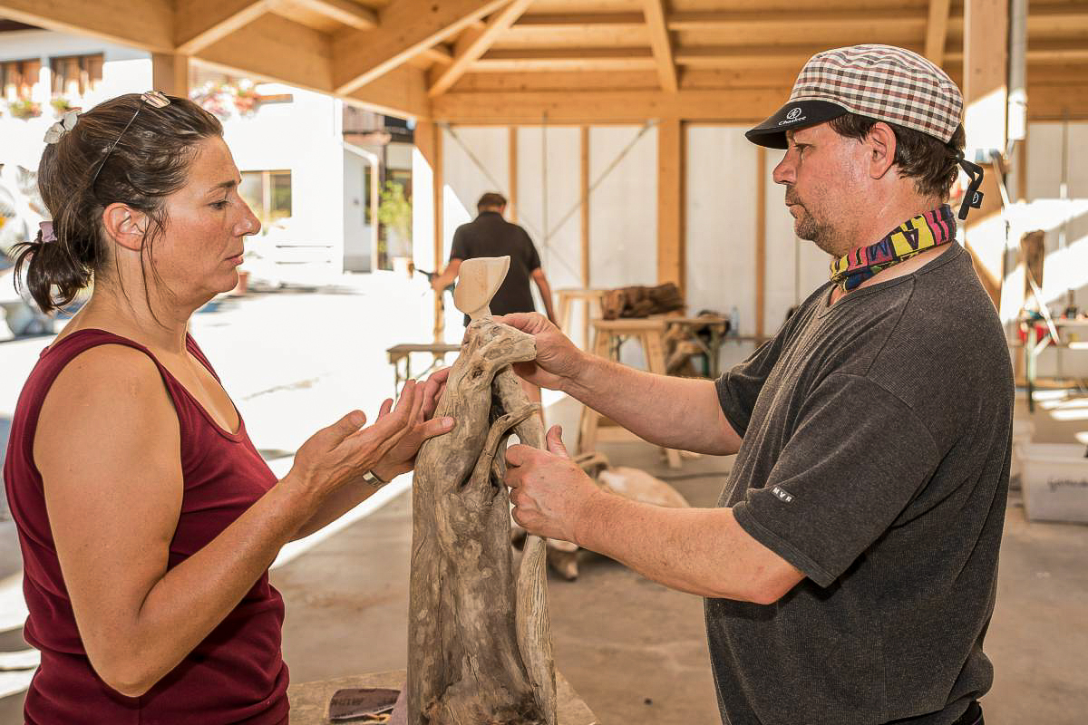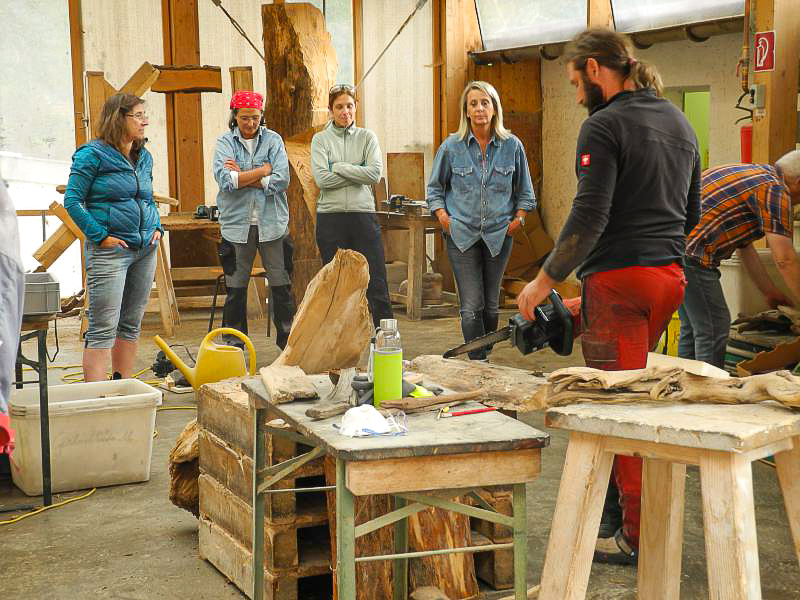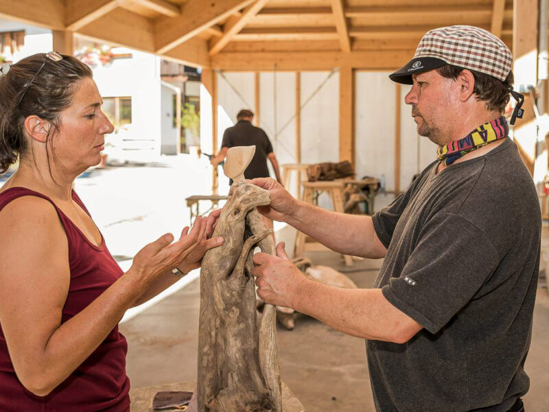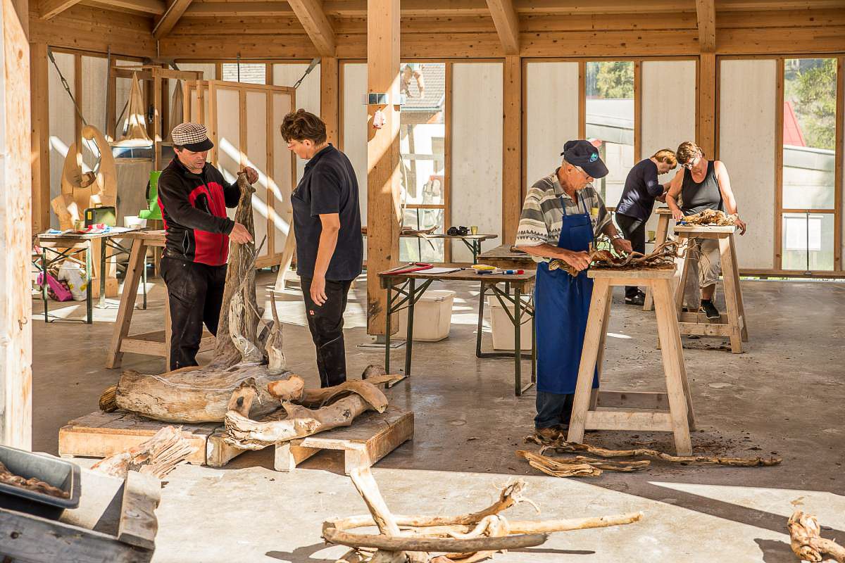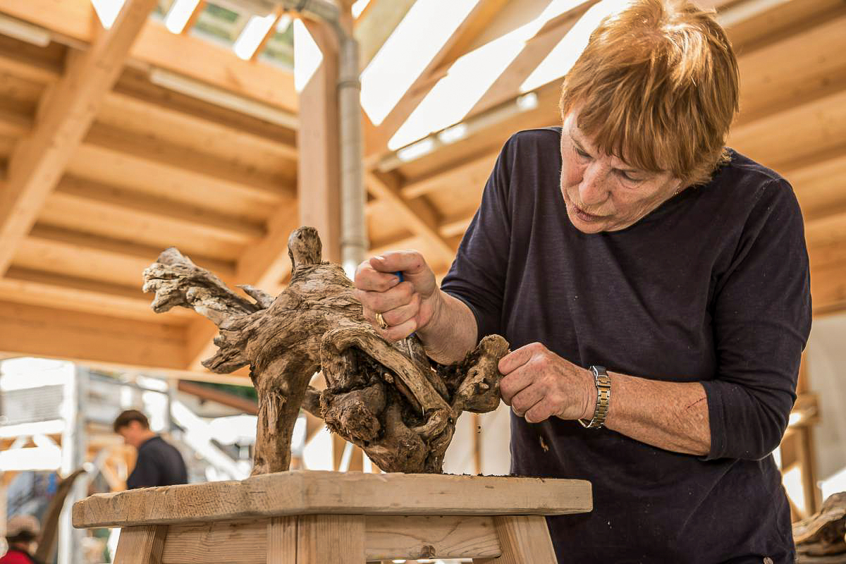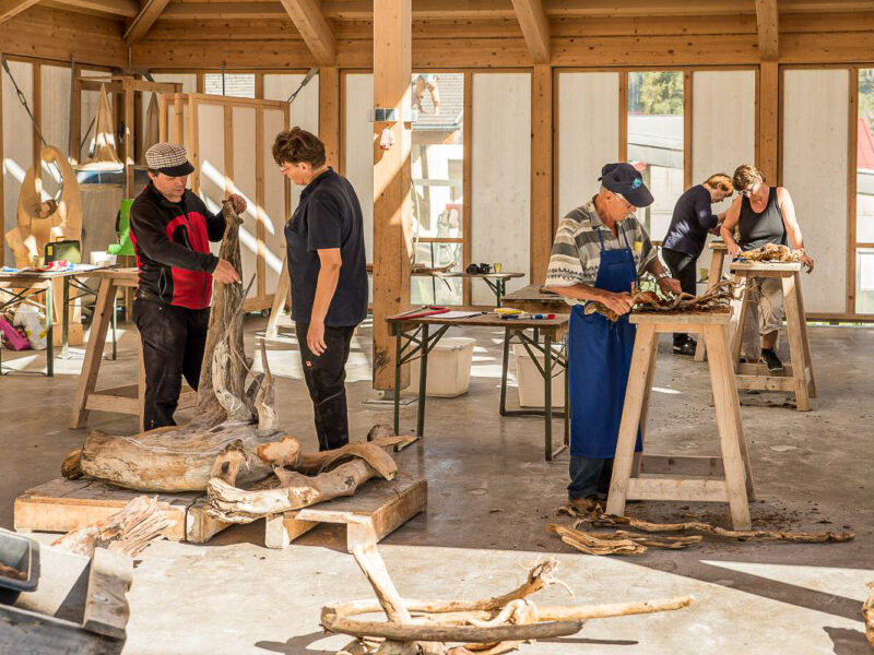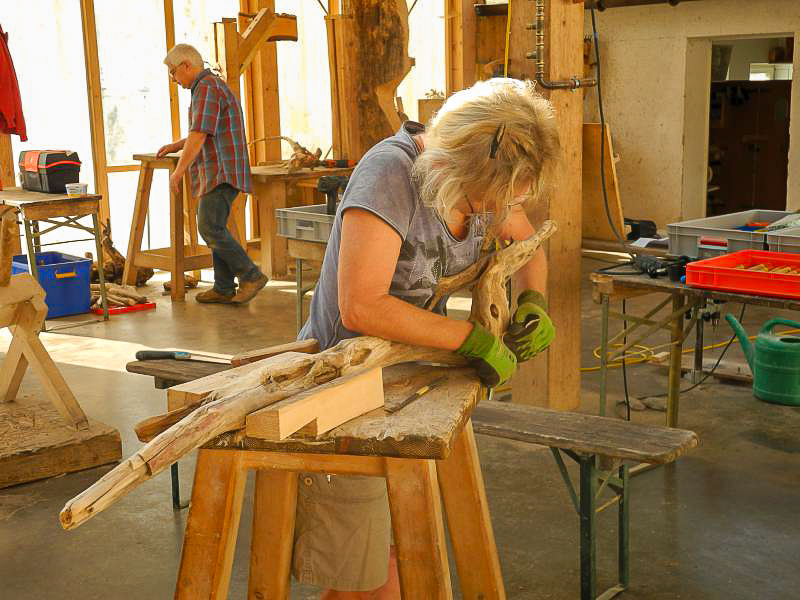 Gemeinsam mit dem Kursleiter gehen Sie an den Ufern von Lech und Wildbächen auf Entdeckungsreise nach interessanten Hölzern. Die von der Natur geformten Strukturen bilden die Basis für die weitere Bearbeitung. Neben Kreativität und Inspiration kommen Werkzeuge wie Schnitzeisen, (Ketten-)Säge, Beil, Raspeln, Feilen und Schleifmaschine zum Einsatz. Nehmen Sie sich immer wieder Zeit, um das Geschaffene zu betrachten, sich mit Ihren Kurskollegen auszutauschen
