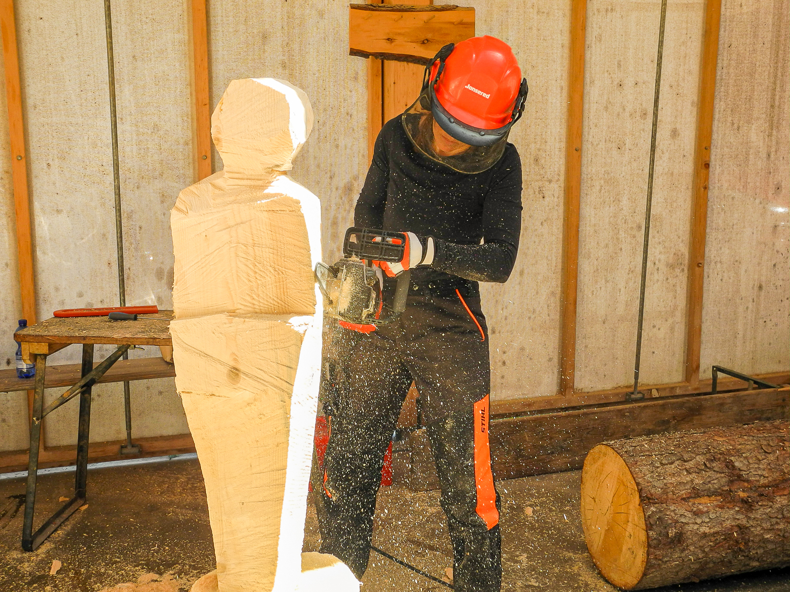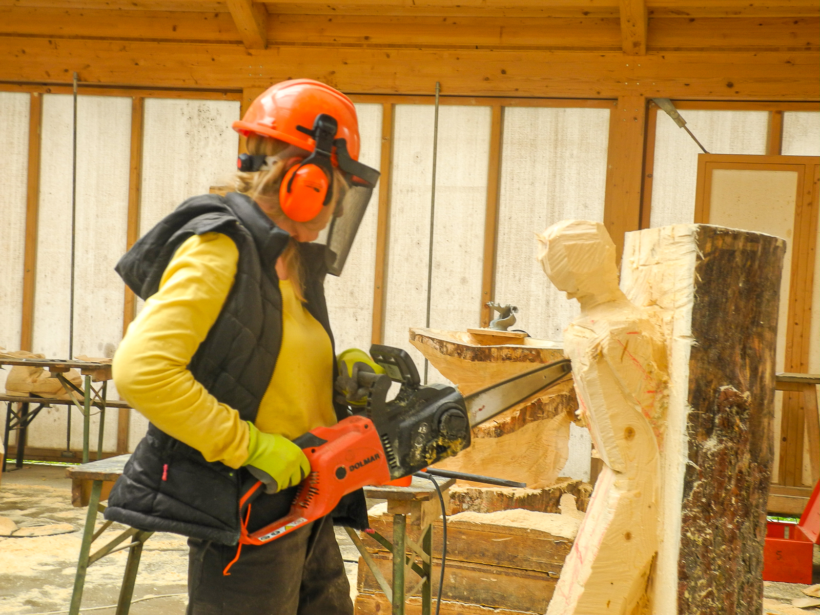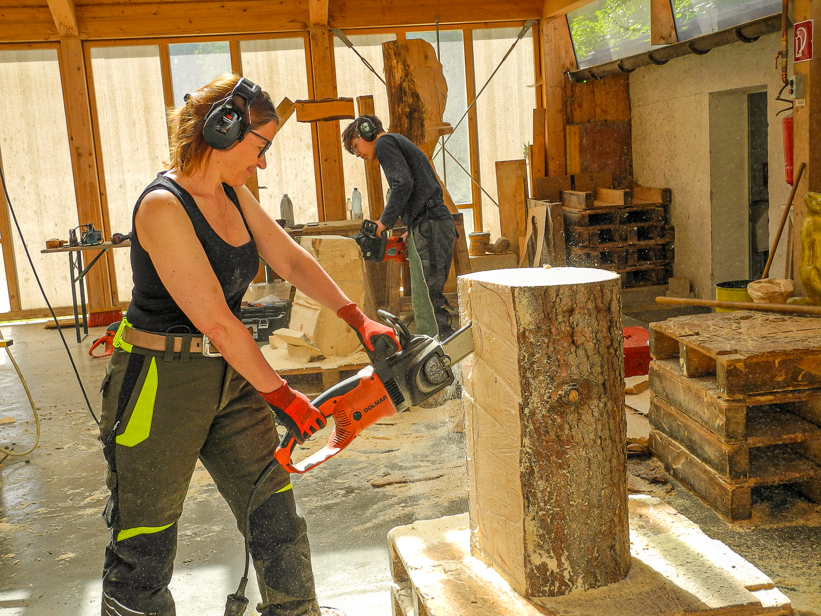 Kettensägenkurs exklusiv für Frauen kreiert. Entscheidend beim Schnitzen mit der Kettensäge ist nicht die Muskelkraft, sondern Feingefühl und die richtige Technik. Um sich genau darauf konzentrieren zu können, wollen wir eine Atmosphäre schaffen, in der sich Frauen ohne Stress und Leistungsdruck ganz ihrem Interesse widmen können. In dieser Umgebung steht dem kreativen Schaffen, dem Austausch mit gleichgesinnten Kursteilnehmerinnen und dem Schließen von neuen Freundschaften nichts mehr im Weg.