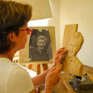 Sie erlernen Schritt für Schritt die Technik des Flachreliefs und setzen dabei ein mitgebrachtes Porträtfoto direkt in Holz um (ohne vorher ein Modell zu erstellen). Dabei wird durch genaues Arbeiten und das Verwenden vieler Messpunkte die Vorlage im Maßstab 1:1 auf ihr Holzstück übertragen und geschnitzt. Geduld und Genauigkeit sind für ein gutes Ergebnis ausschlaggebend. Zum Abschluss wird das fertig geschnitzte Porträt, wenn gewünscht, noch naturgetreu mit Acryl- und Ölfarben lasierend bemalt.